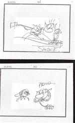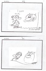 These storyboards are original drawings (except where noted in the descriptions) from the Ren and Stimpy Adult Party Cartoon episode Onwards and Upwards. I have many other copy only pages from these sequences, but they are largely not included here. Note the revision differences in many of the sequence 19 drawings.